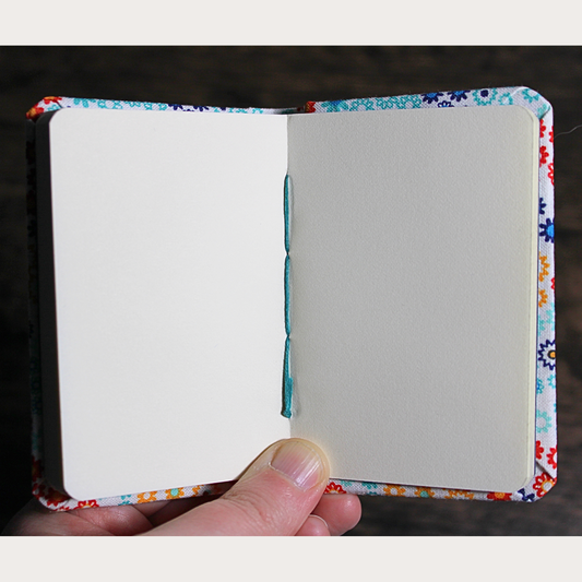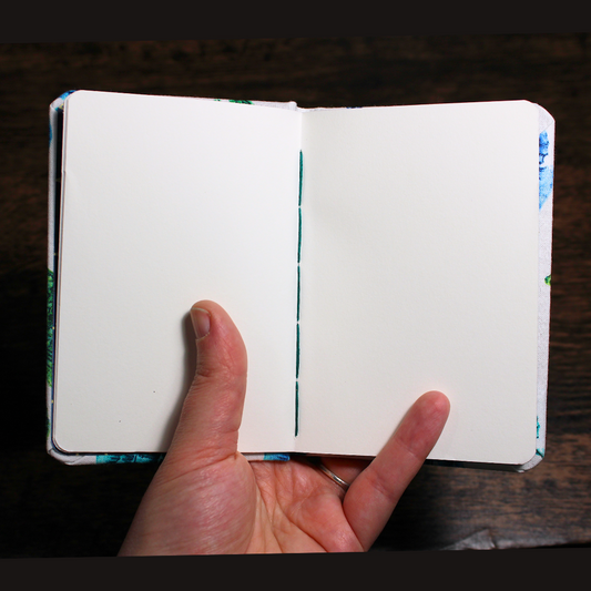 Mint Green Floral and Upcycled Blue Denim Watercolor Sketchbook